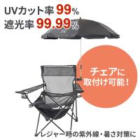 キャンプチェアに取り付け可能で、アウトドア時の紫外線や暑さから身を守るパラソル。