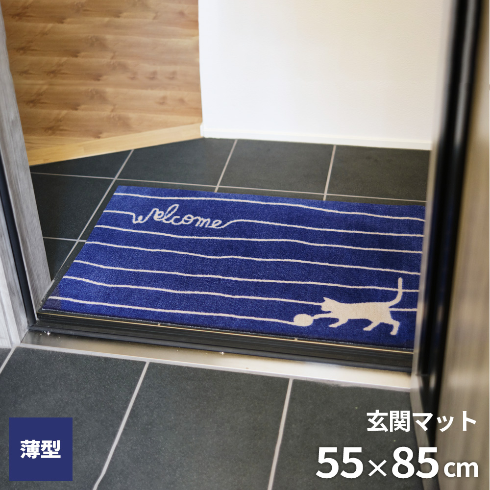 靴裏の汚れをしっかり拭き取る!かわいいねこ柄の薄型ドアマット。【55×85cm】