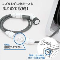 付属の接続アダプターで、ノズルと蛇口側ホースも一緒に巻き取り収納でき、日差しによる劣化を防ぎます。