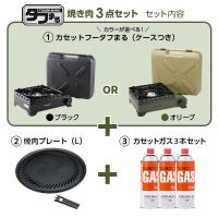 ダッチオーブンの使用OK!屋外での使用に特化した風防付きカセットコンロと、焼肉プレートと、純正カセットガスとのセット。