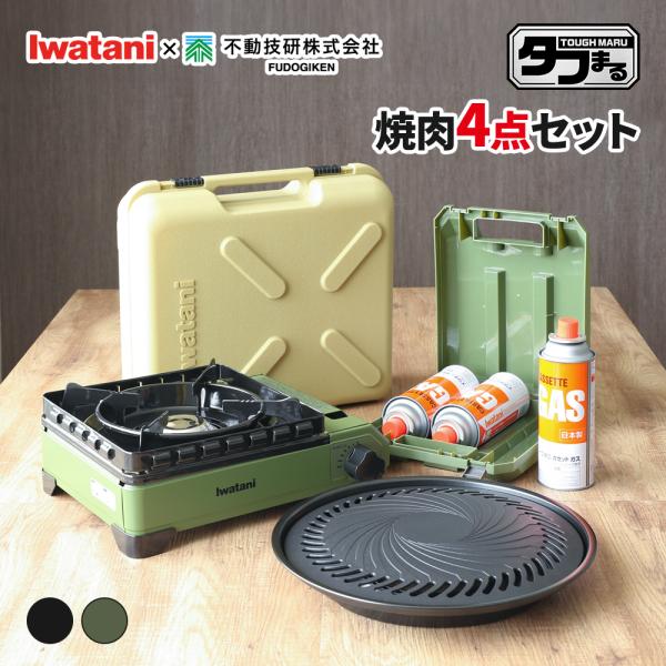 「イワタニ カセットフー タフまる」×1、「イワタニ 焼肉プレート」×1、「イワタニ カセットガス オレンジ 3本組」×1、「不動技研 カセットボンベ収納ケース」×1