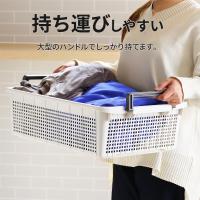 プラスチック製で軽量だから、持ち運びに便利。収納物が入った状態でも両側のハンドルでしっかり持てます。