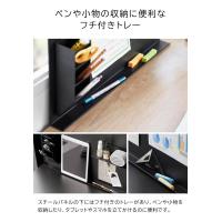 スチールパネルの下にはフチ付きのトレーがあり、ペンや小物を収納したり、タブレットやスマホを立てかけるのに便利です。