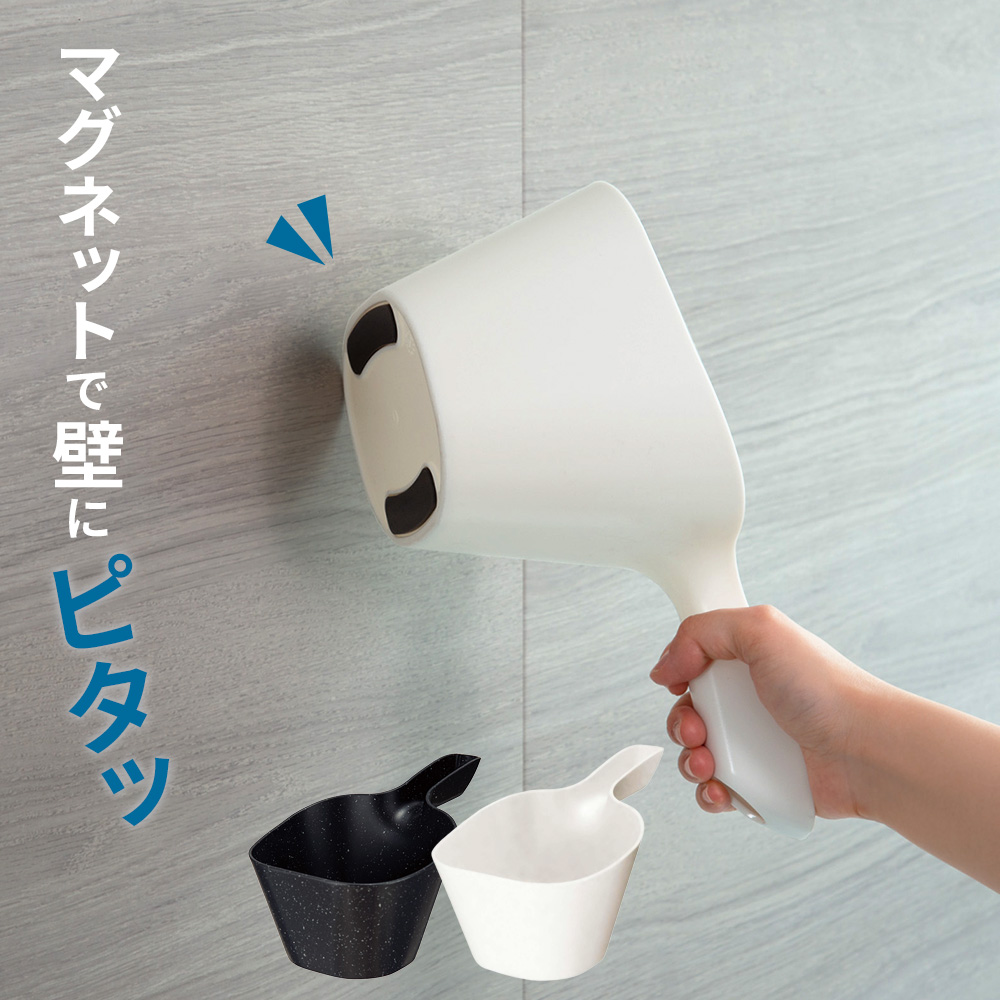 手桶は立てて置くことができます。下面の磁石をお掃除後、乾かす際に便利です。
