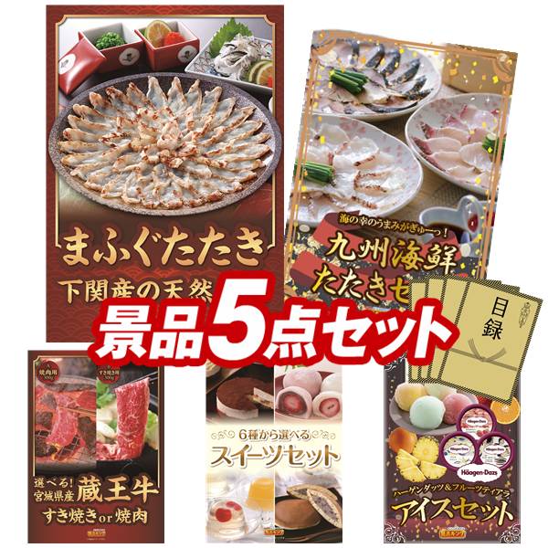 忘年会 景品セット 5点 結婚式二次会 ゴルフコンペ イベント パーティーにも最適!目玉は下関天然まふぐたたき!