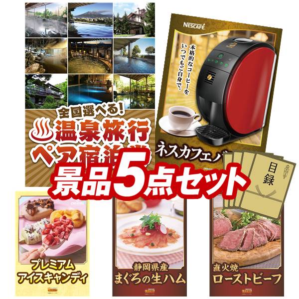 忘年会 景品セット 5点 結婚式二次会 ゴルフコンペ イベント パーティーにも最適!目玉は選べる!全国温泉旅行ペア宿泊券!