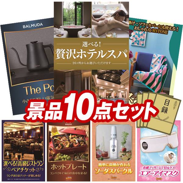 忘年会 景品セット 10点 結婚式二次会 ゴルフコンペ イベント パーティーにも最適!目玉は選べる!贅沢ホテルスパ!