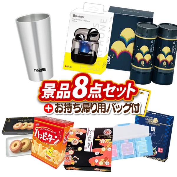 《追加用》二次会景品8点セット【ワイヤレスイヤホン/サーモス真空断熱タンブラー300ml 等】豪華A3パネル・目録・特典付き!送料無料