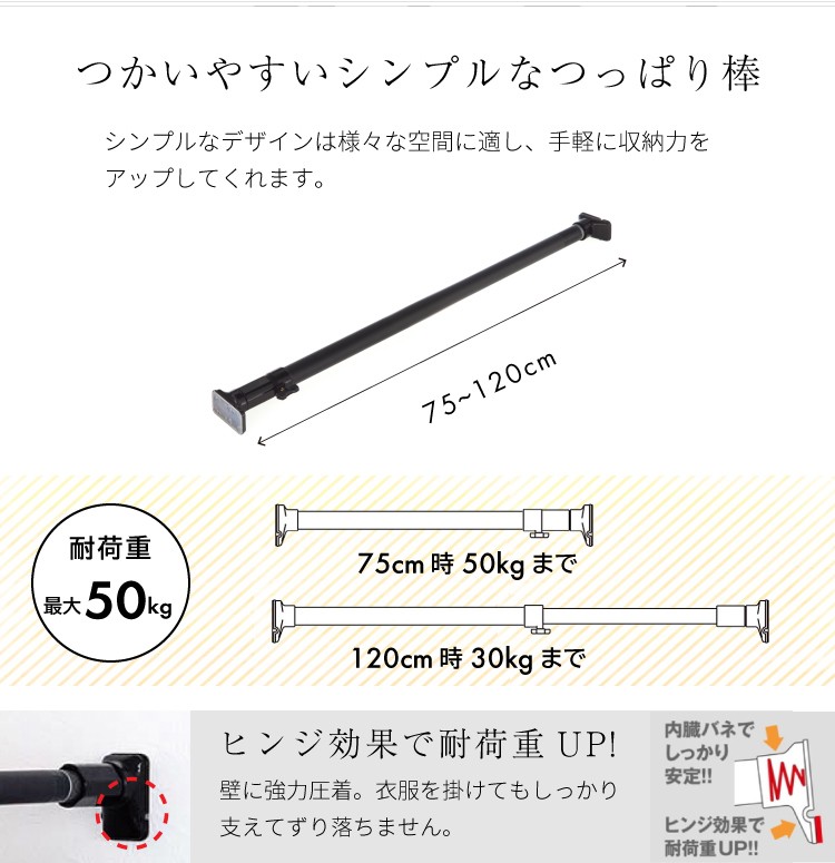デットスペースを利用して、収納力をアップできるスタンダードなつっぱり棒です。