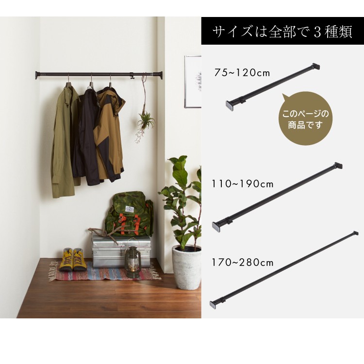ポール部分がインテリアに馴染むつや消しマットブラックなので、おしゃれな部屋の見せる収納にオススメです。