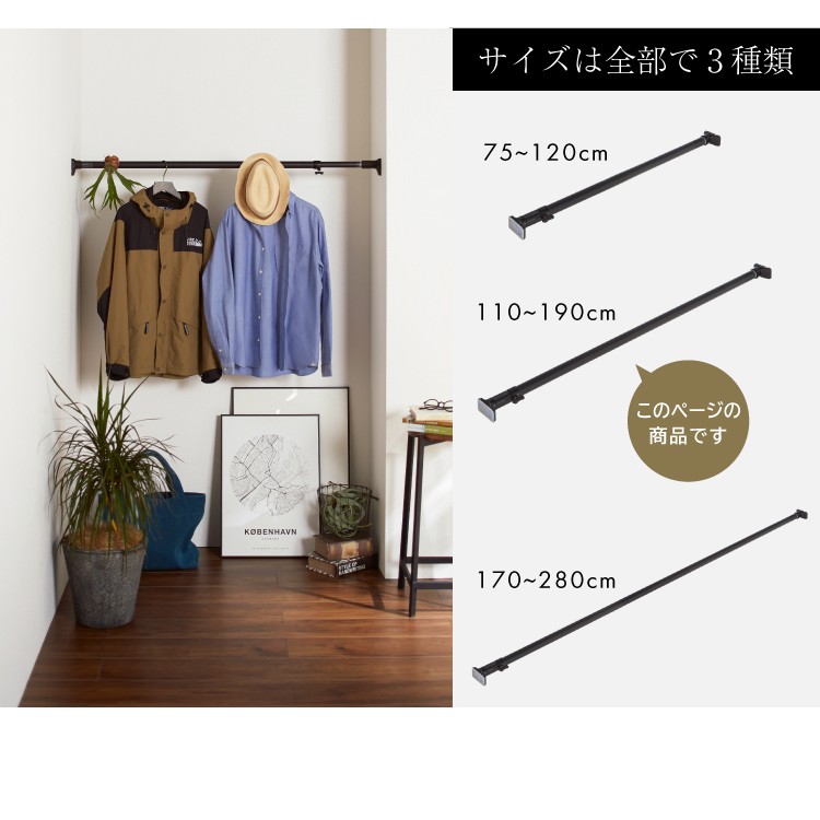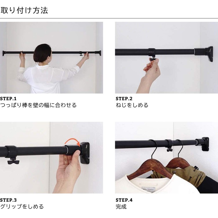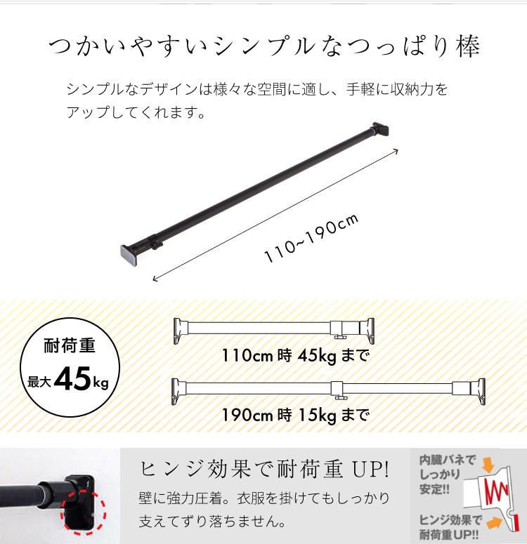 デットスペースを利用して、収納力をアップできるスタンダードなつっぱり棒です。
