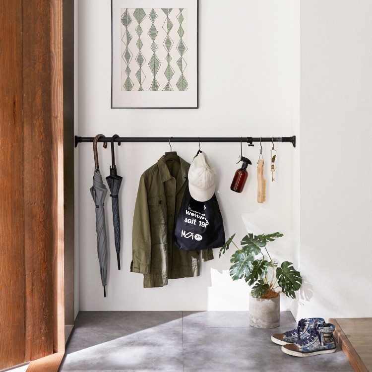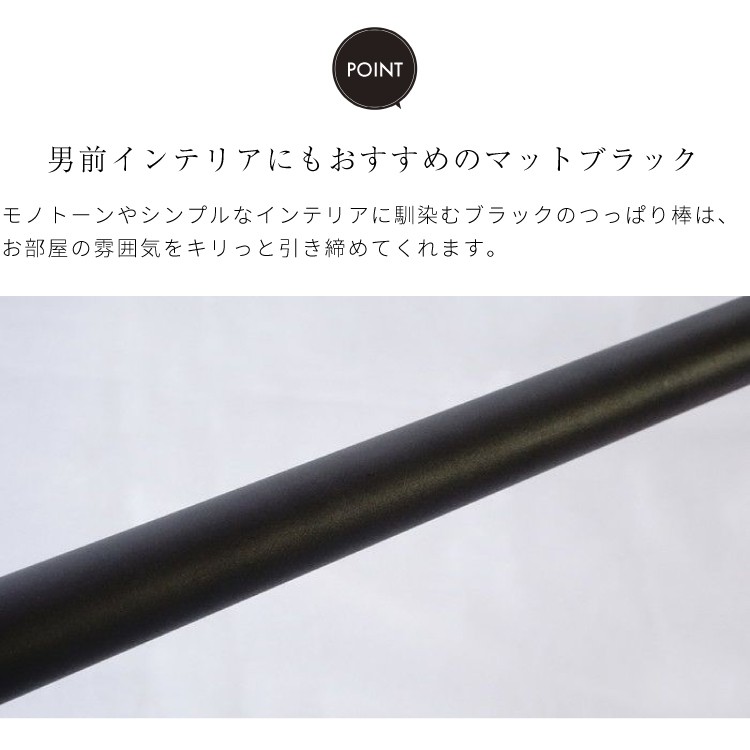 ポール部分がインテリアに馴染むつや消しマットブラックなので、おしゃれな部屋の見せる収納にオススメです。