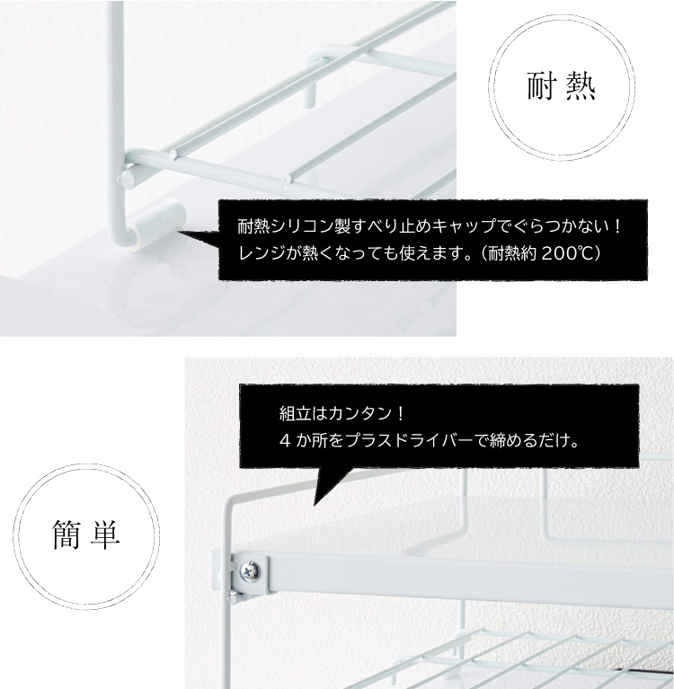 レンジの上部に便利な2段棚です。
