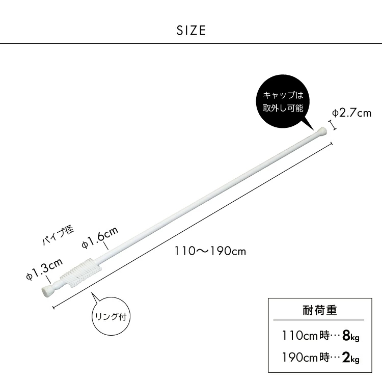 突ぱり便利ポール リング付L 白幅110〜190cm