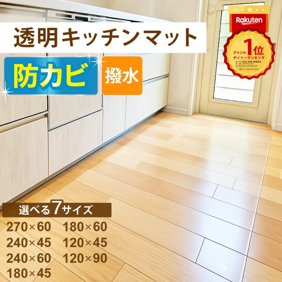 キッチンマット 滑り止め クリア 拭ける 270×60cm 撥水 PVC 台所マット 床暖房対応