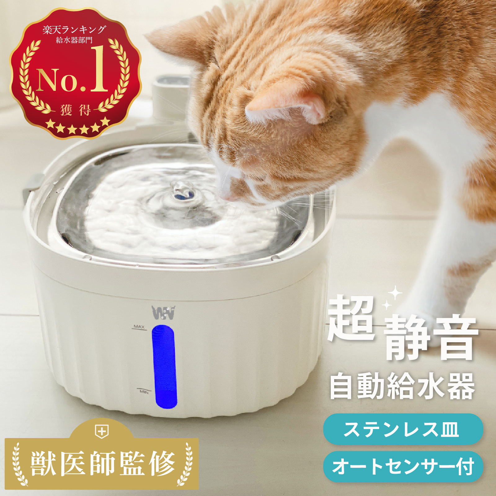 猫 水飲み器 給水器【獣医師監修】 自動給水器 犬 ペット 静音 オートセンサー付き ステンレス製で洗いやすい