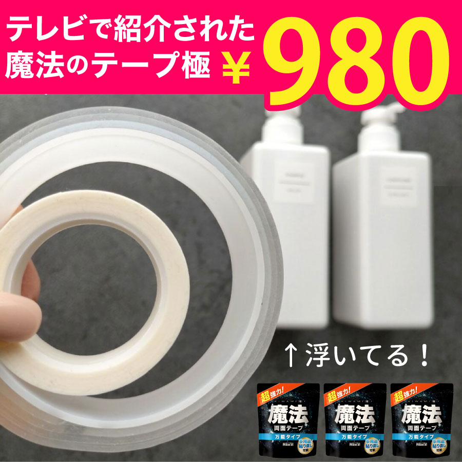 種類: 両面テープ 素材: アクリルゴム 色: 透明 幅: 3cm 厚さ: 2mm 長さ: 1m 内容: 魔法のテープx1、養生用マスキングテープx1、説明書。