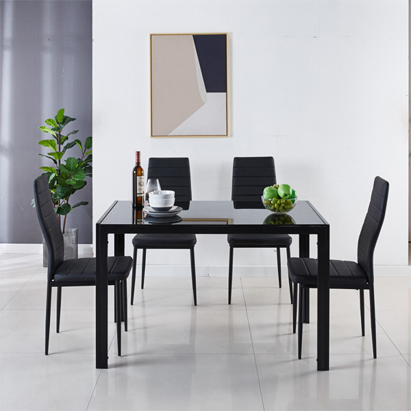 ダイニングテーブルセット 5点セット 4人掛け 110cm ガラス製テーブル ダイニングチェア 4脚 ハイバック おしゃれ 4人