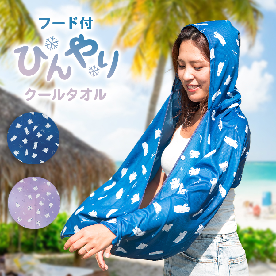 クールタオル ウォータータオル 冷感 冷却 フード付き ポンチョ UVカット UPF50+ 大人用 アウトドア ひんやり 熱中症対策 瞬間冷却 ビーチタオル おしゃれ