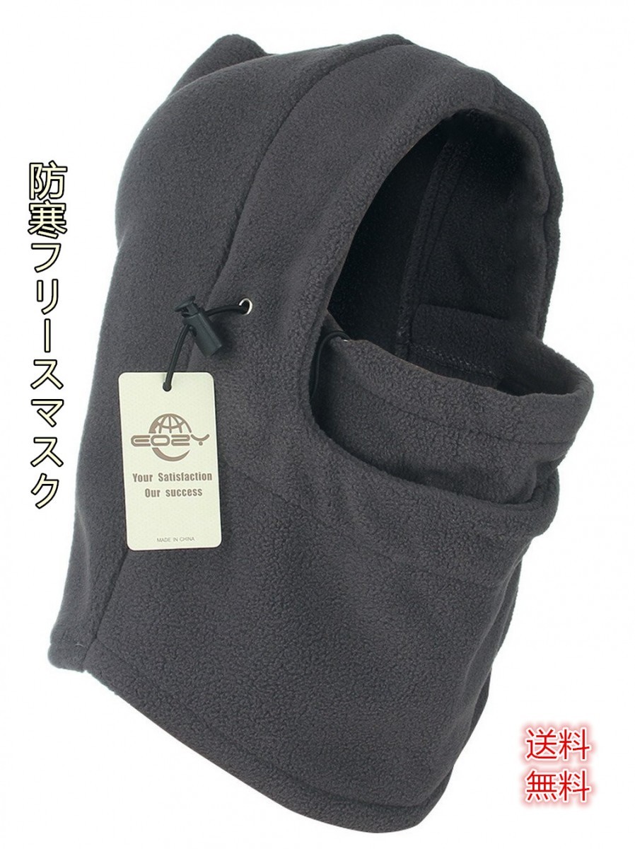 送料無料 多機能 防寒フリースマスク 6WAY フェイスマスク・ネックウォーマー・帽子 ユニセックス グレー