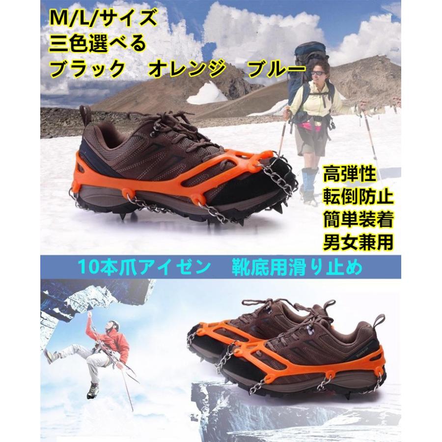 送料無料 雪かき 雪掃除の安全にも アイゼン スパイク 靴底用滑り止め M/L/サイズ 10本爪ステンレス鋼TPEゴム 高弾性 転倒防止簡単装着 男女兼用 収納袋付き