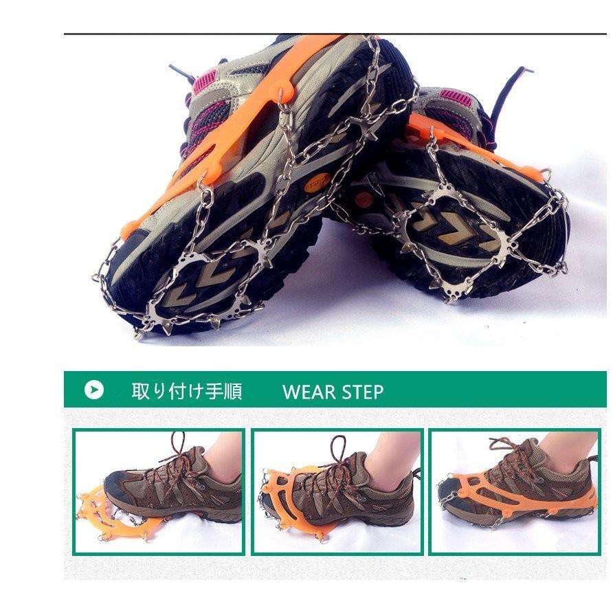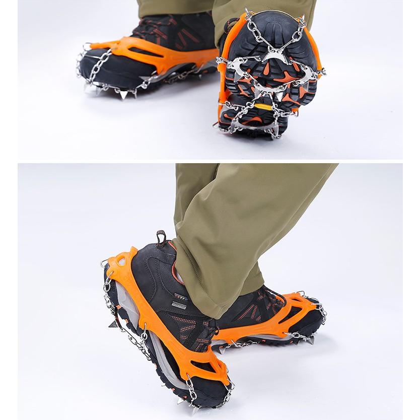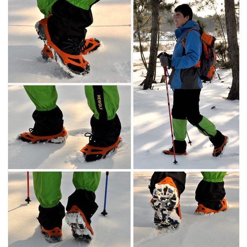 簡単装着・携帯便利:簡単装着:爪先やかかとの部分をを覆うように装着するだけの簡単装着です。ゴムを伸ばしてはめるだけなので、脱着がとても楽です。広い適用範囲:雪山、登山、旅行、クライミング、ウォーキング、ジョギング、トレッキング、ハイキング、お釣り、狩猟、犬の散歩、雪かきなどに最適です。