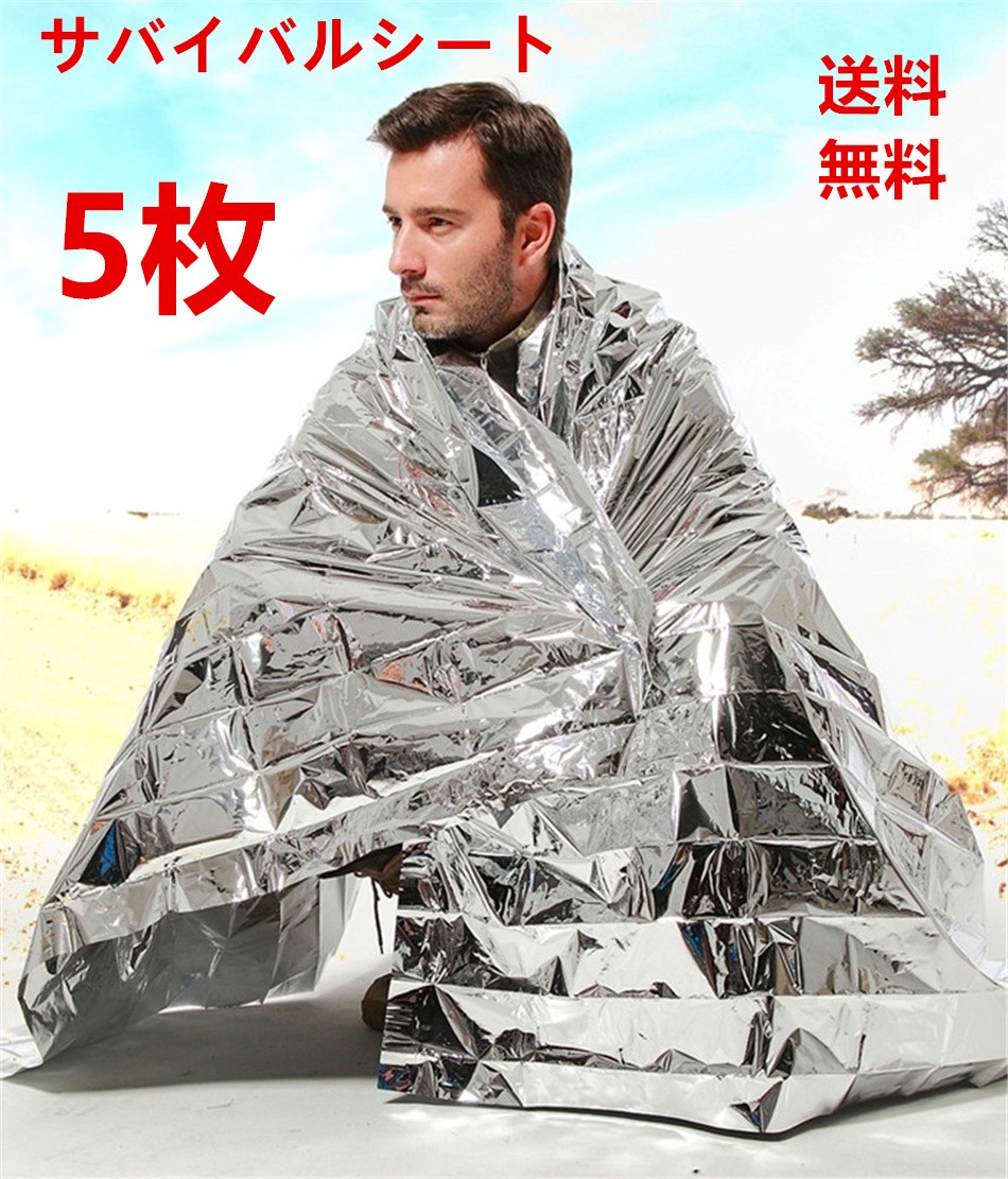 送料無料 防災グッズ サバイバルシートエマージェンシーシート防寒・保温 シルバー5枚セット