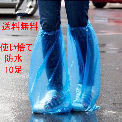 送料無料 ビニール シューズカバー 防水 使い捨て 靴カバー 雨用 ロング 10足入り