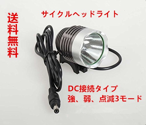 送料無料 サイクル ヘッドライト 高輝度 3モード DC接続 ブラック