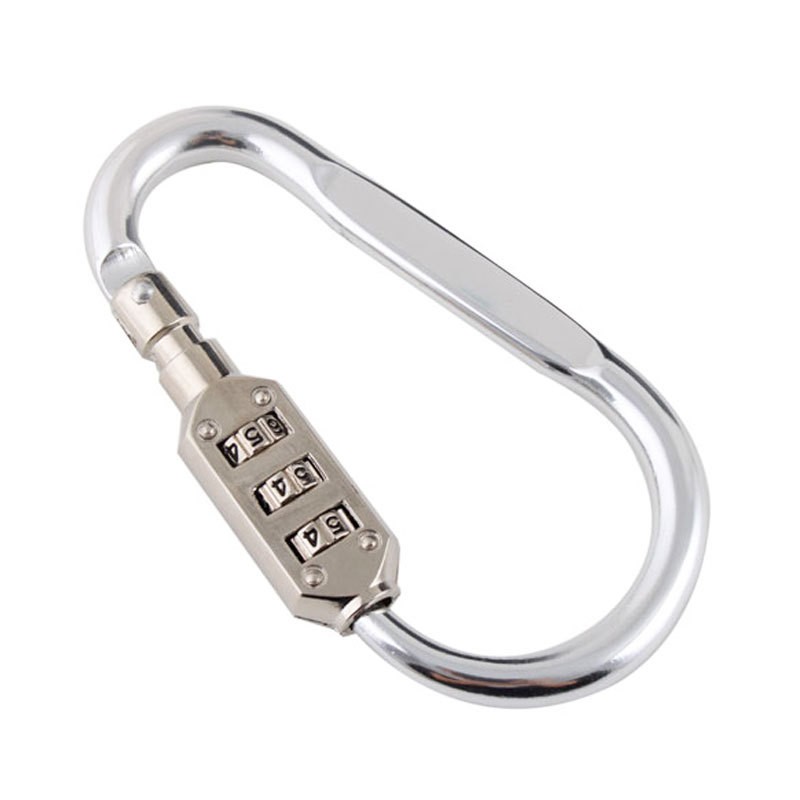 送料無料 盗難防止 ホルダー ヘルメットホルダー 防犯 カラビナ 式 ナンバーロック 暗証番号 鍵 簡易 安全 頑丈 キー 大サイズ シルバー