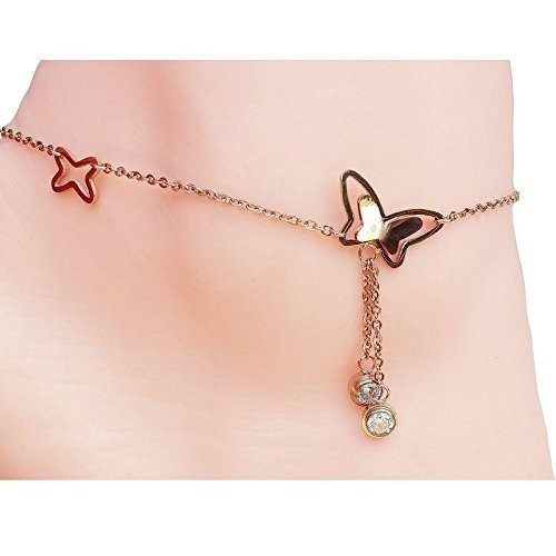送料無料 アンクレット レディース 蝶モチーフ チェーンタイプ ステレンス キュービックジルコニア