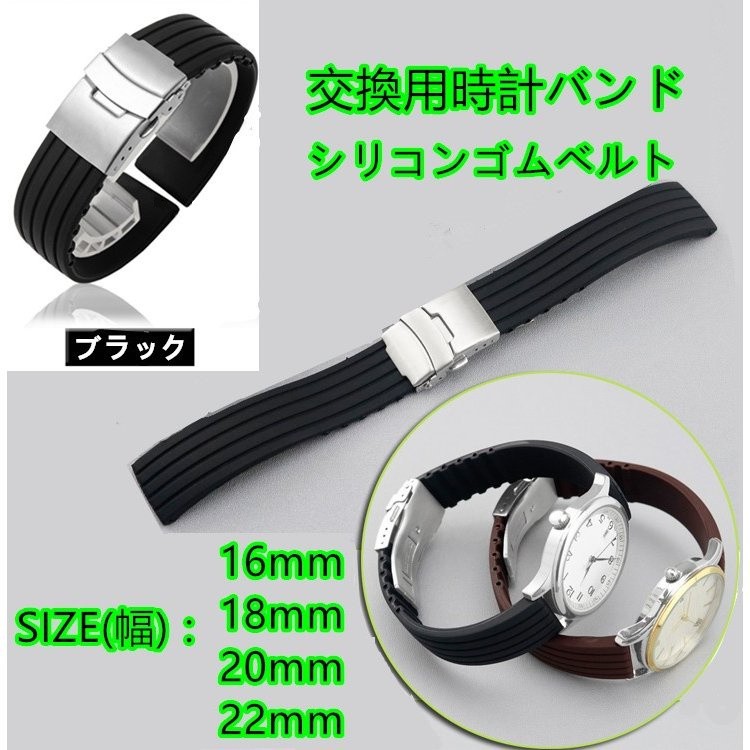 送料無料 腕時計バンド防水 腕時計ベルト 交換 ウォッチ ストラップ シリコンゴム 16mm 18mm 20mm 22mm 縦シマ ブラック