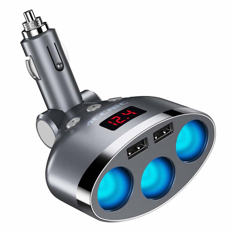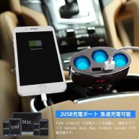 3連車用ソケット分配器 2USBポート 5V合計3.4A 急速充電 車載充電器 カーチャージャー 増設 独立スイッチ 電圧測定