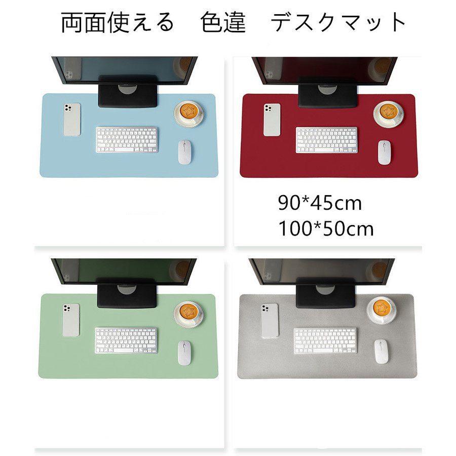 【配送2種】デスクマット両面 マウスパッド 大型 両面カラー別 防水 PUレザー ノートパソコン オフィスデスクマット 90*45cm 100*50cm