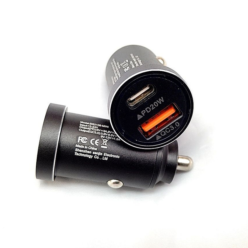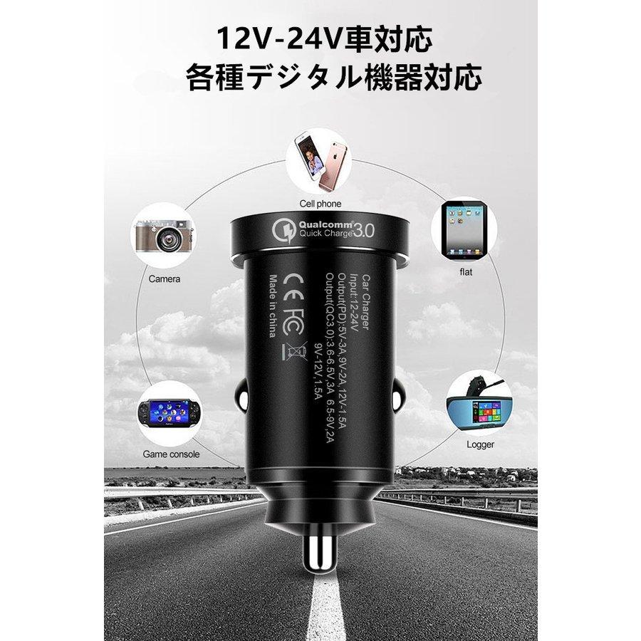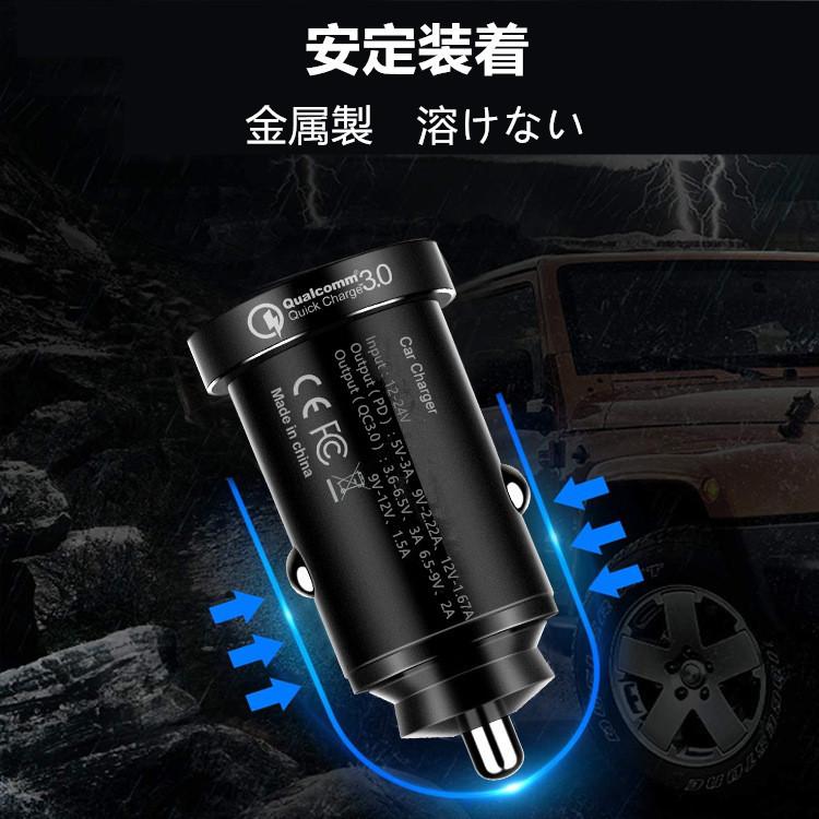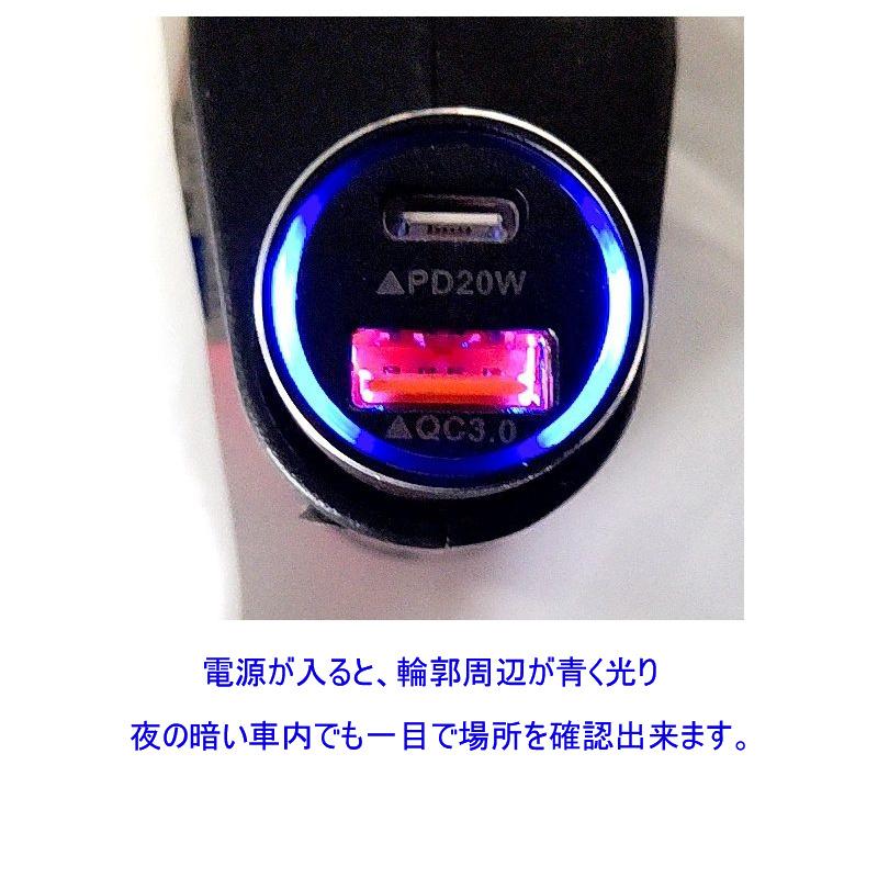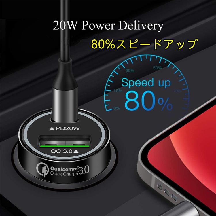 送料無料 便利グッズ 車 QC3.0&PD20Wシガーソケット 車載充電器 2ポート 小型 12V/24V 車用【合計38W/急速充電】