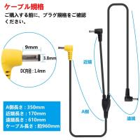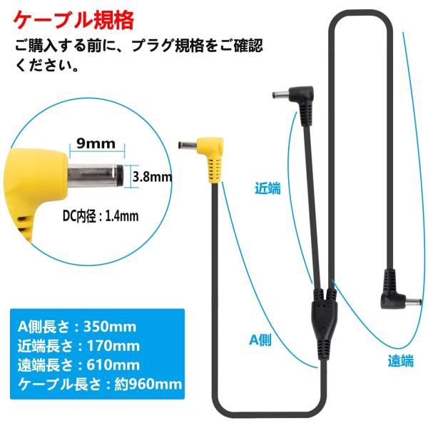 【DC-DCケーブル仕様】ファン側:オス DC内径:1.4mm 外径:3.8mm プラグ露出部分長さ:8.3mm / 電源側:メス DC内径:1.4mm 外径:3.8mm プラグ露出部分長さ:9.0mm、ケーブル長さ:約96cm。