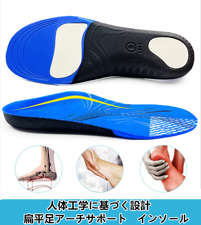 送料無料インソール 扁平足アーチサポート3D アーチ型 土踏まず中敷きクッション 衝撃吸収スポーツ 偏平足 インソール