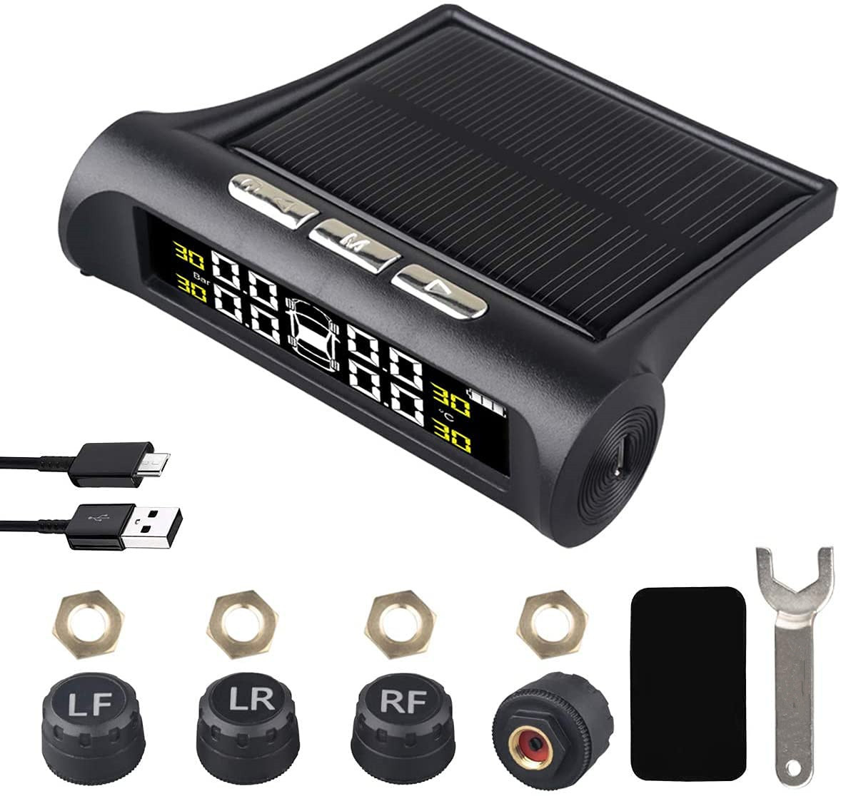 【お試し特価】送料無料 日本語音声採用 タイヤ空気圧センサー TPMS 気圧 温度 リアルタイム監視 ソーラー充電/USBダブル充電 振動感知 取り付け簡単 多車種対応