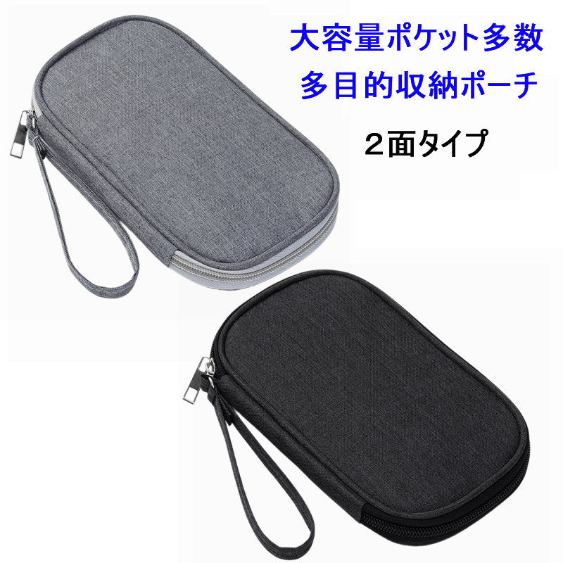 送料無料 2面 大容量 コンパクト 収納ポーチ モバイルポーチ 整理ポーチ テスター 道具 PC周辺機器 小物 軽量 スマホ タブレット アクセサリー 持ち運び 旅行