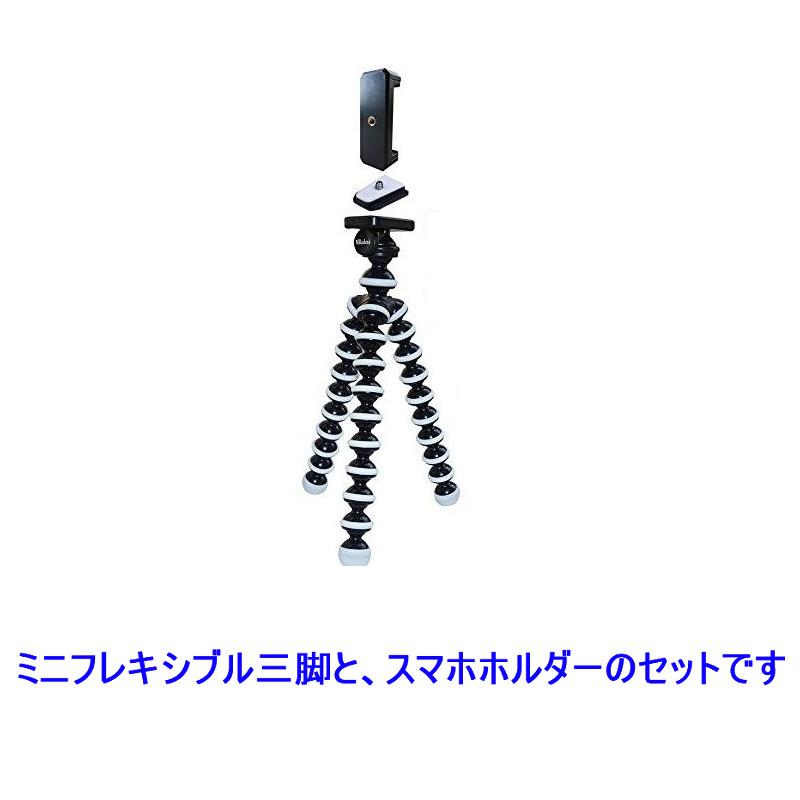 送料無料 三脚+ホルダーセット スマホ三脚 フレキシブル三脚 スマホホルダー 軽量 コンパクト スマホ 小型カメラ用 コンパクト どこでも設置