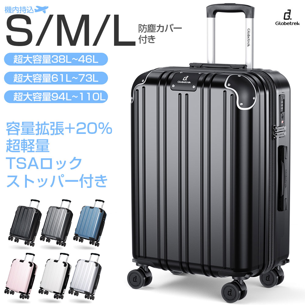 \セール/Globetrek スーツケース キャリーケース S/M/L 38L/61L/94L 容量拡張 +20% 軽量設計 S 機内持込対応 大容量 2-7泊 収納 仕切り 旅行 出張 修学旅行