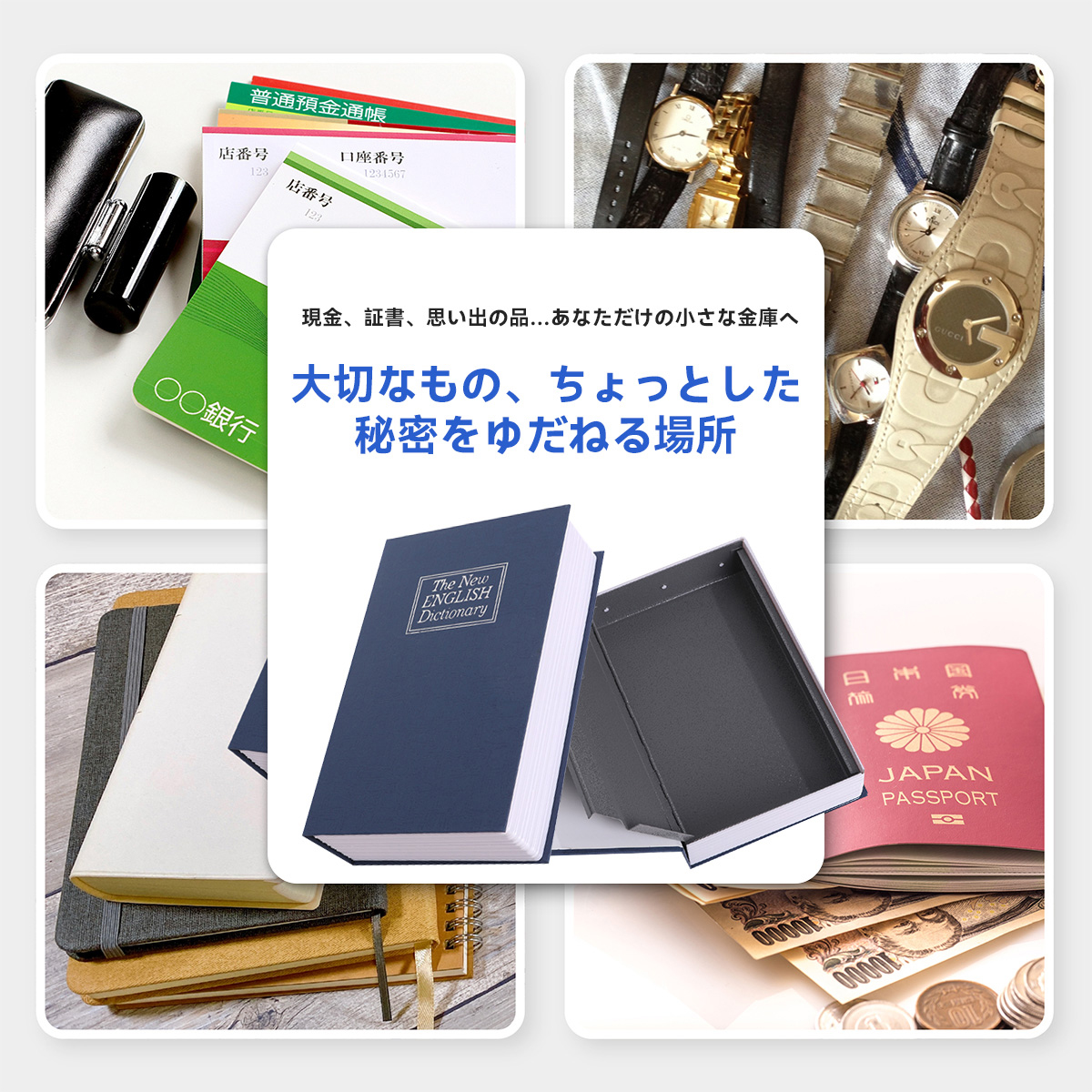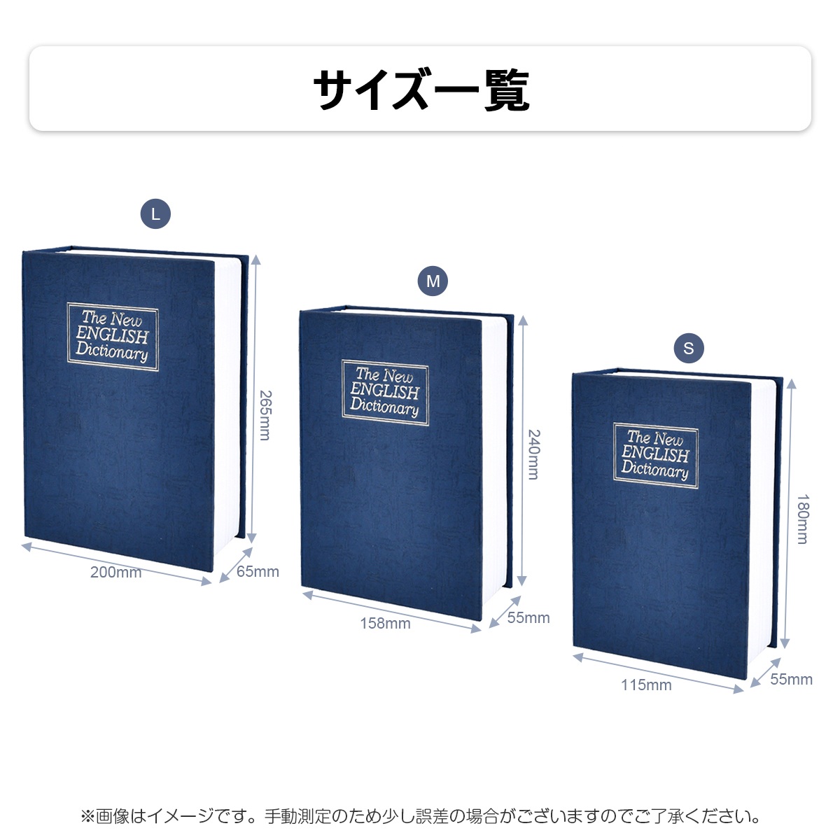 家庭用 小型 辞書型 金庫 収納ケース 収納ボックス お金 硬貨 コイン 通帳 パスポート 印鑑 オフィス 防犯用品 お札 収納 スチール製 S M L 選べる3 size