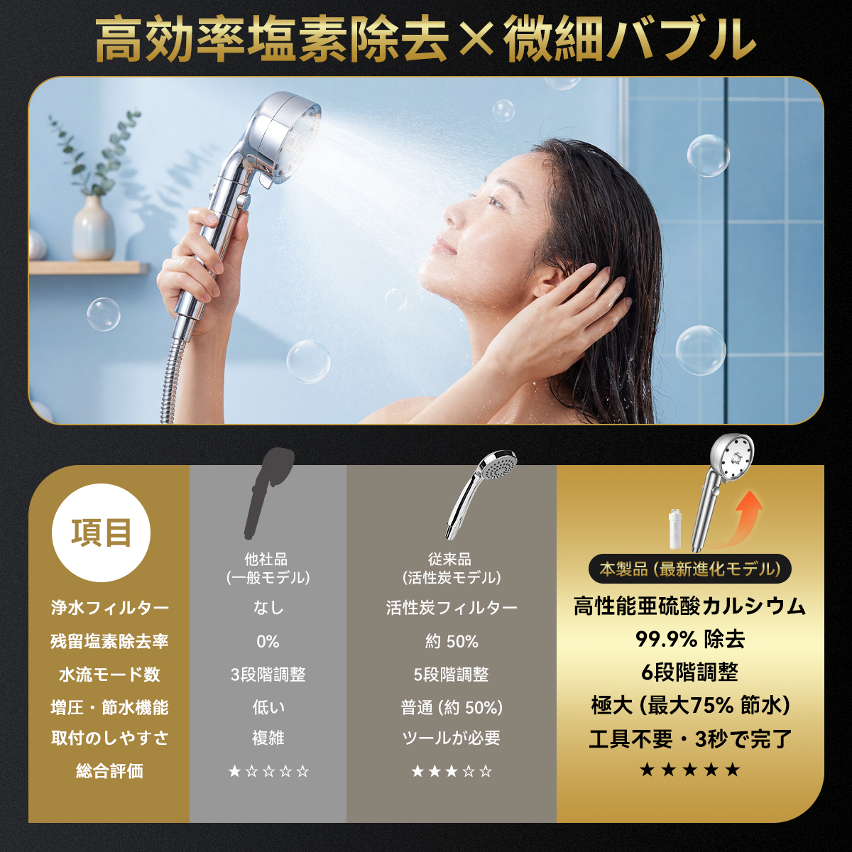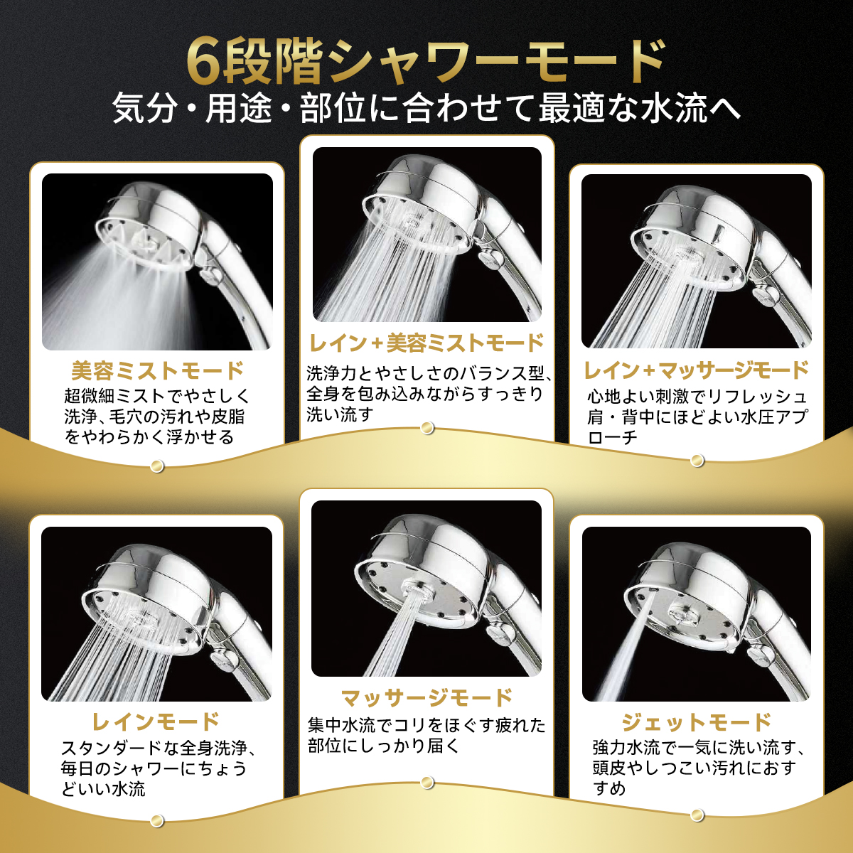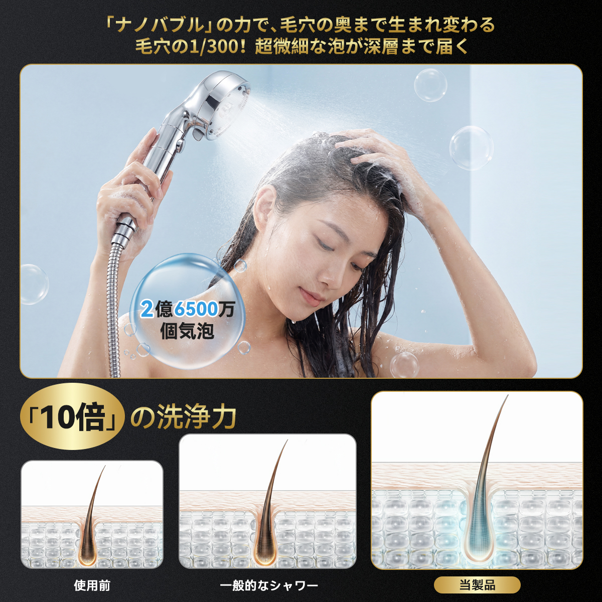 マイクロバブル ナノバブル 6段階モード 節水 高水圧 マイナスイオン 美肌 美容 頭皮ケア お風呂