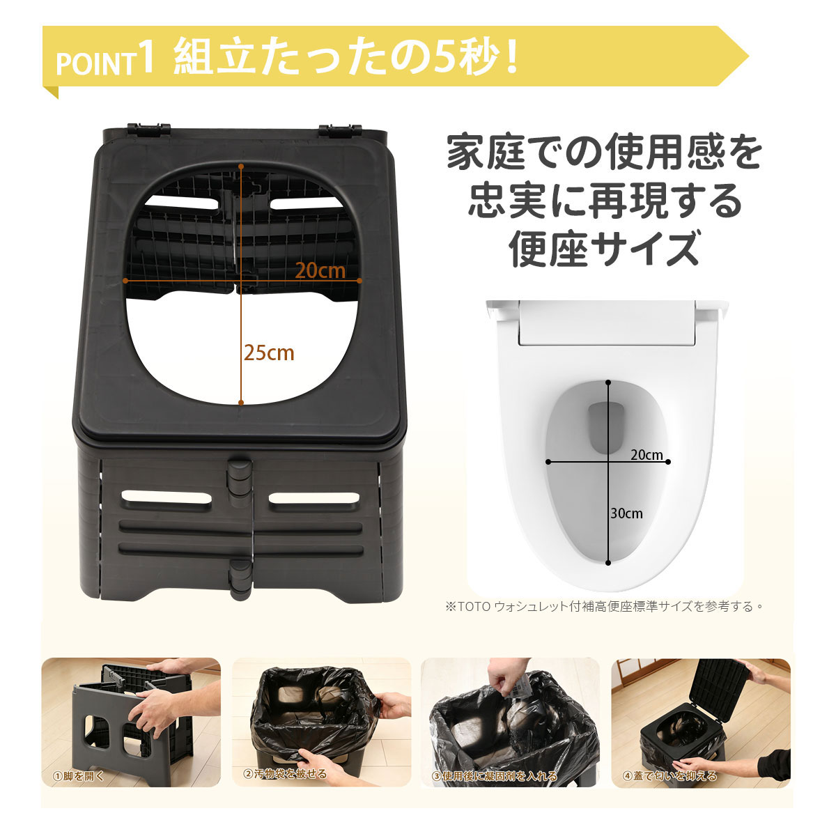 携帯トイレ 簡易トイレ セット 折りたたみ 便座 防災グッズ 緊急トイレ 災害用 介護用 非常用 車中泊 キャンプ 防災 汚物袋12枚付 凝固剤12個付 耐荷重150KG