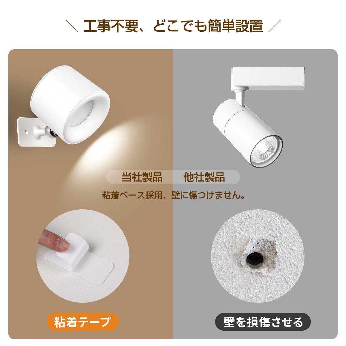 ■工事不要設置簡単:テープで貼り付け