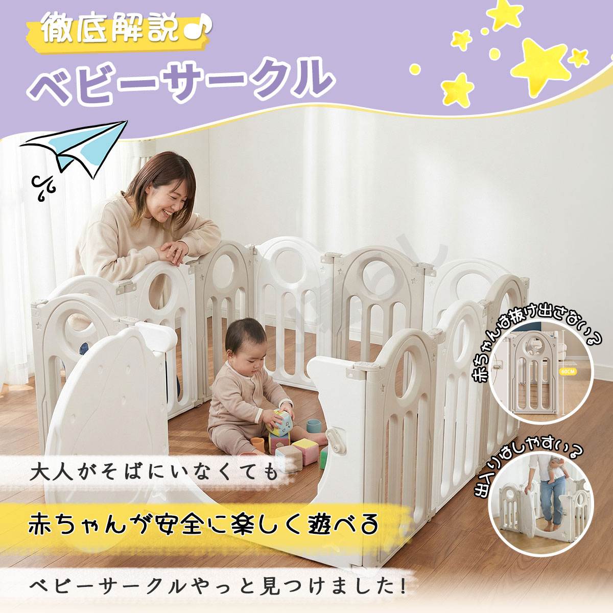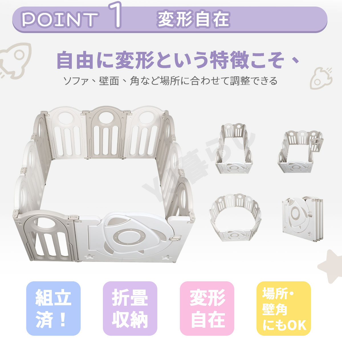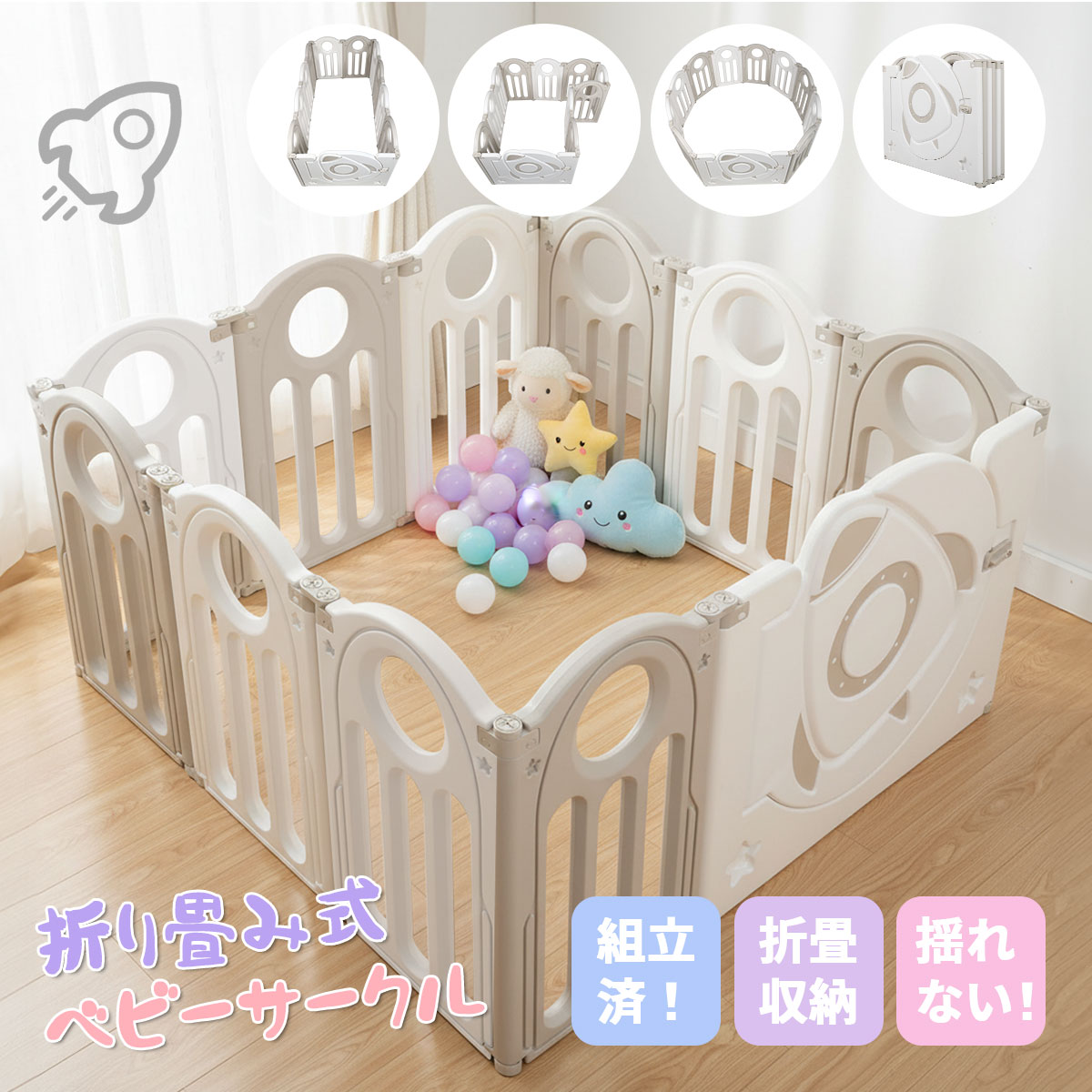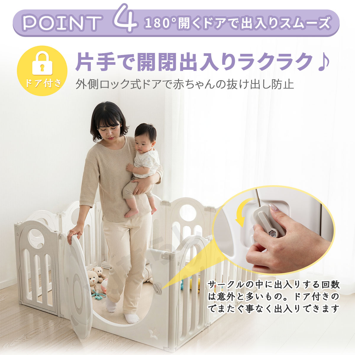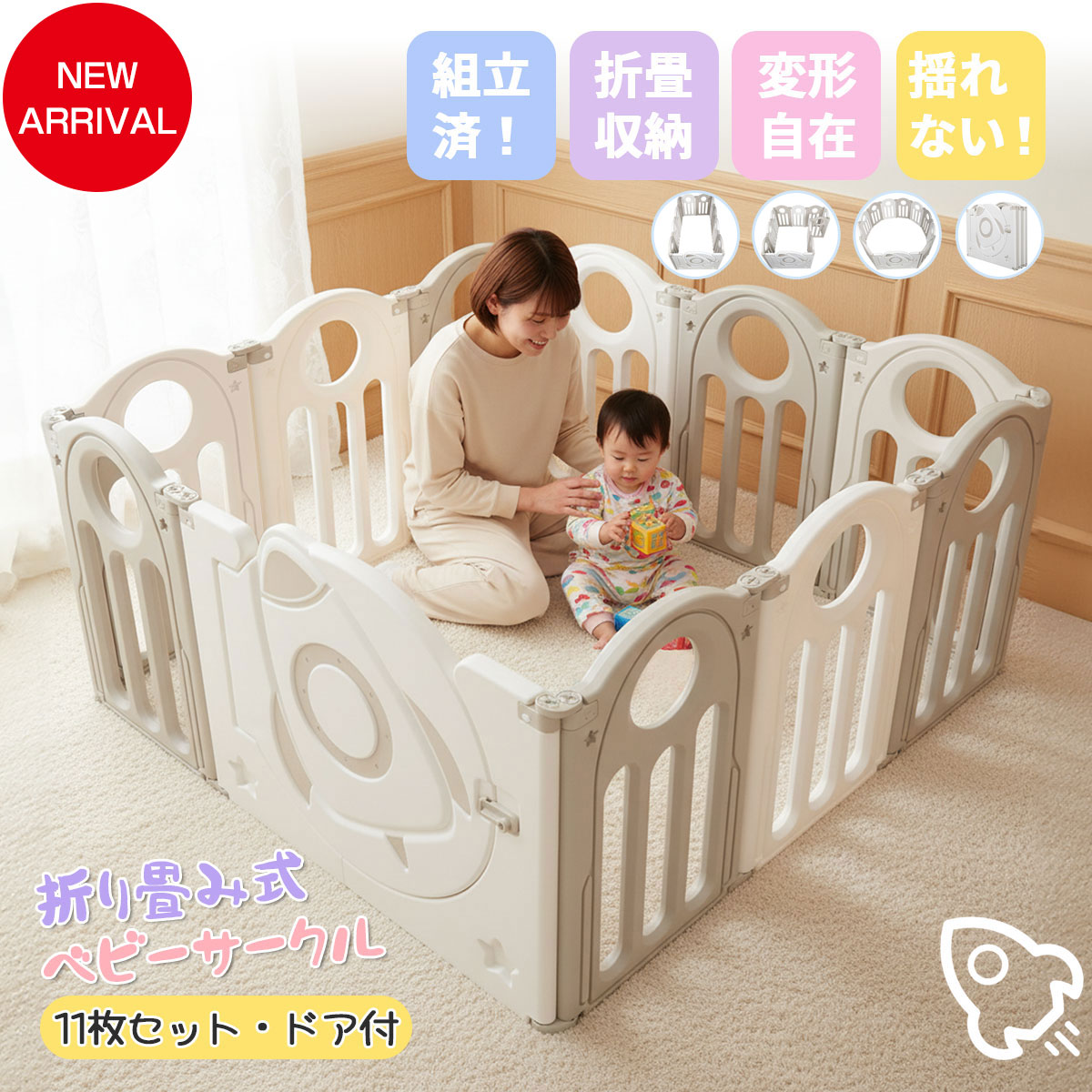 【展開だけ使える】ベビーサークル プレイヤード ベビーヤード 扉付き 赤ちゃん ドアロック付き 11枚セット 変形自在 折り畳み 揺れない 安定性 組立済お届け