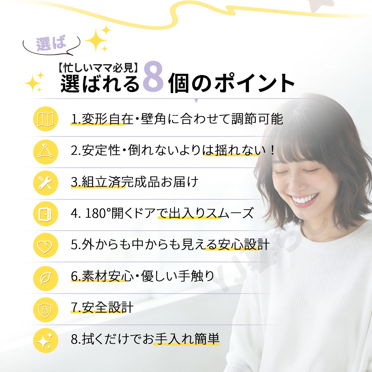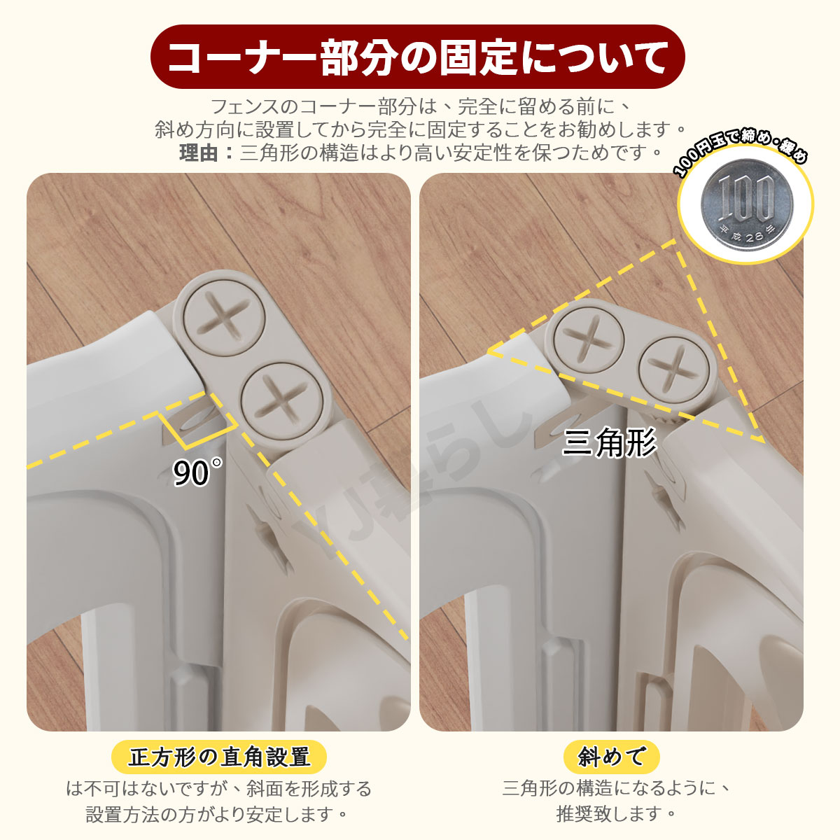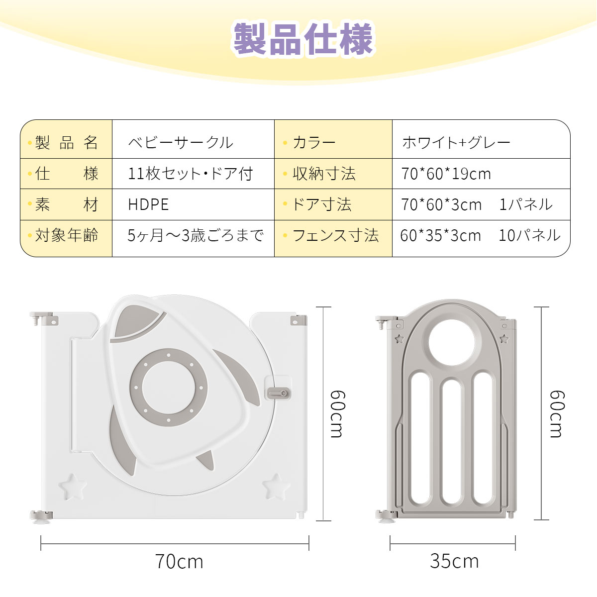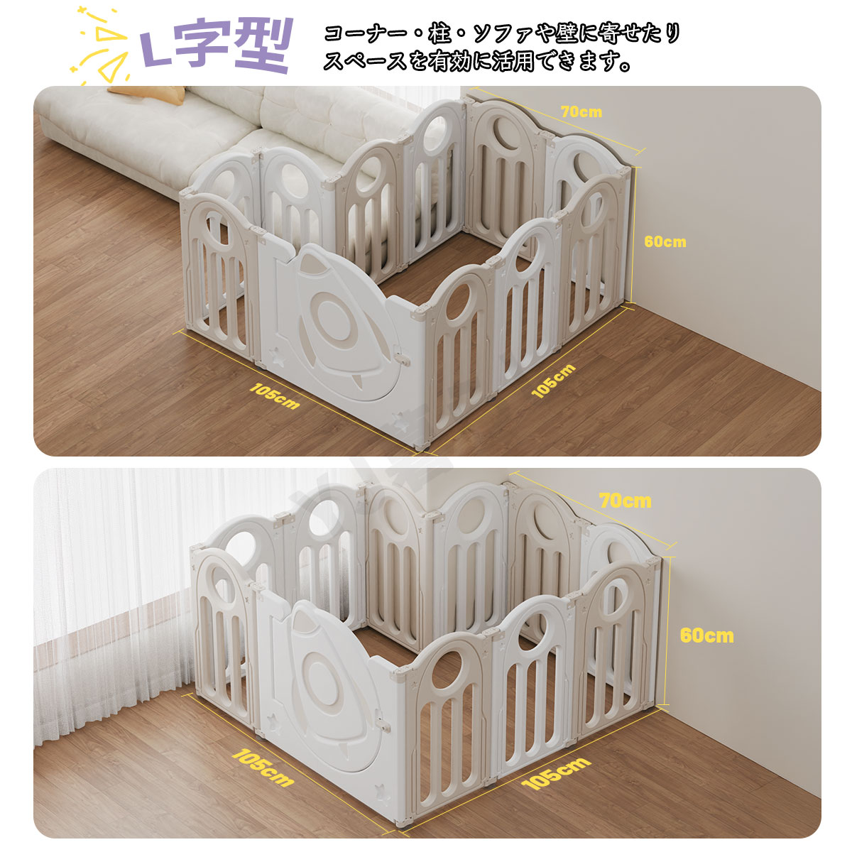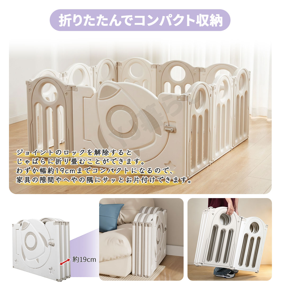 【展開だけ使える】ベビーサークル プレイヤード ベビーヤード 扉付き 赤ちゃん ドアロック付き 11枚セット 変形自在 折り畳み 揺れない 安定性 組立済お届け