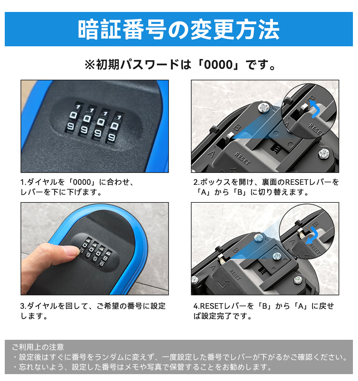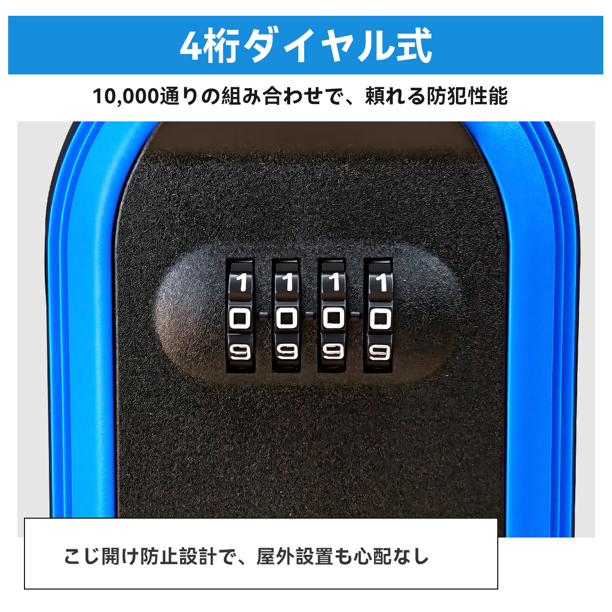 4桁のダイヤル式で10000通りの暗証番号を設定可能