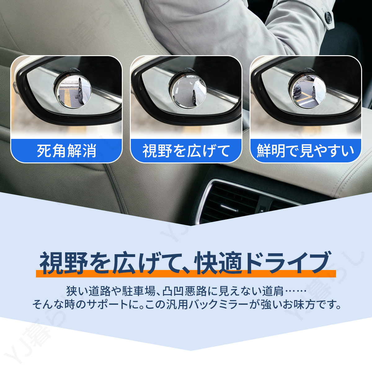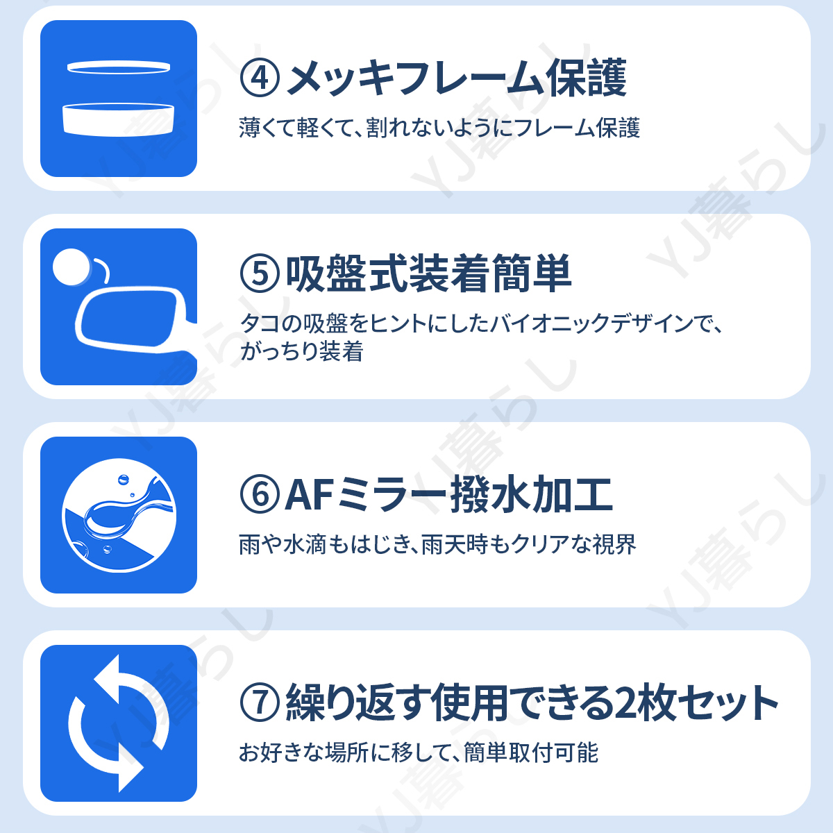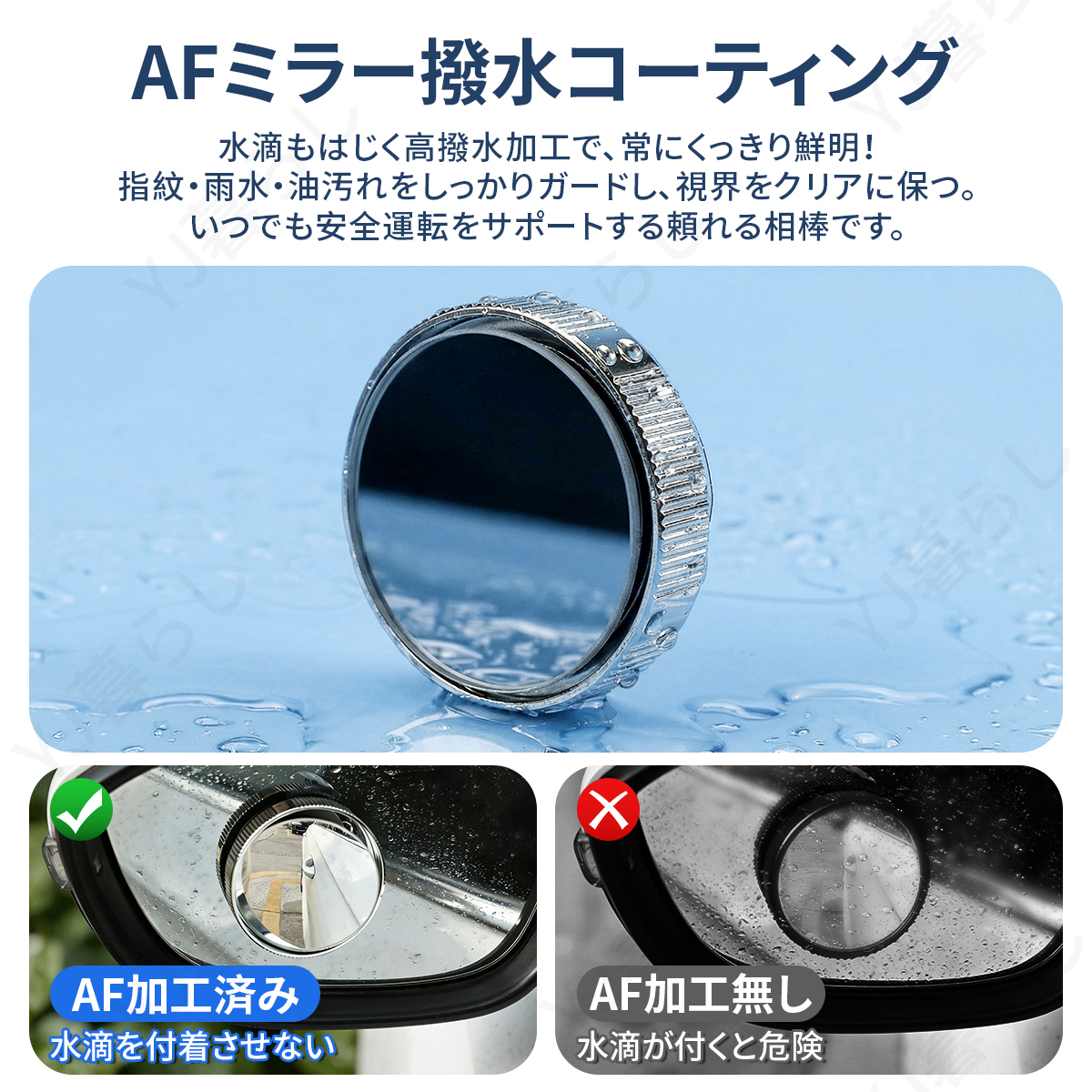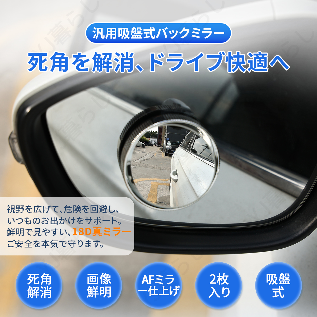 改良版 車用補助ミラー 吸盤式 丸型 円形 ブラインド サイドミラー 角度調整 死角解消 AFミラー撥水加工 360度回転 高精細映像 取り付け場所自由 跡残さず 2枚