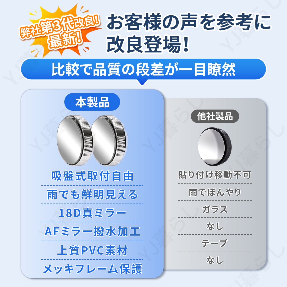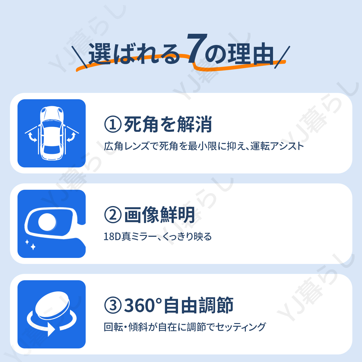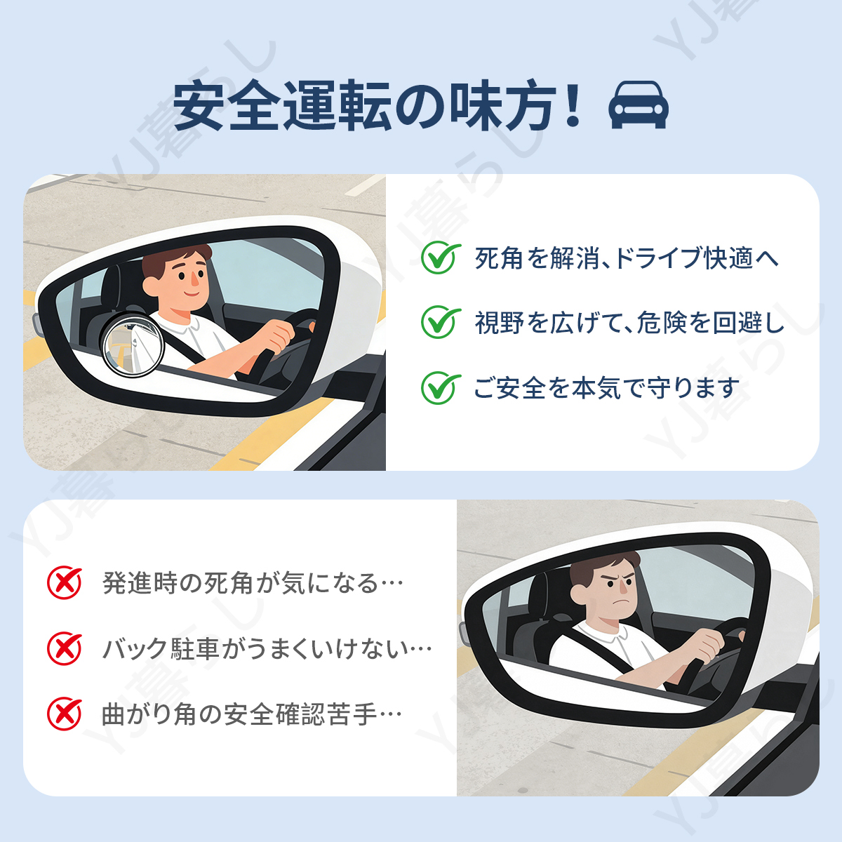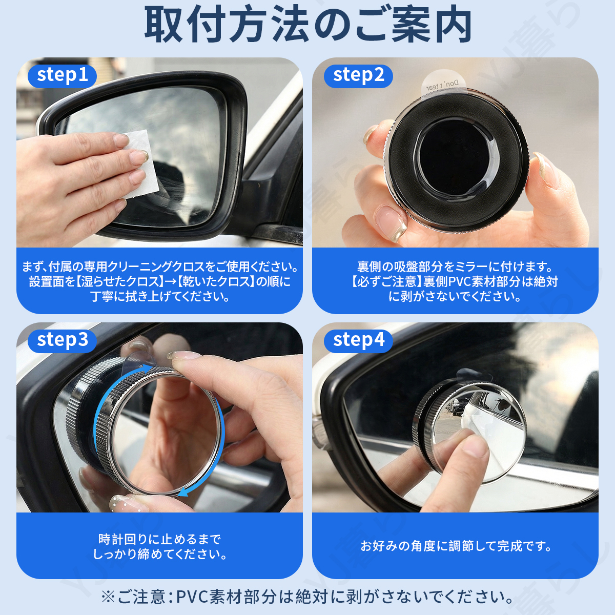 改良版 車用補助ミラー 吸盤式 丸型 円形 ブラインド サイドミラー 角度調整 死角解消 AFミラー撥水加工 360度回転 高精細映像 取り付け場所自由 跡残さず 2枚